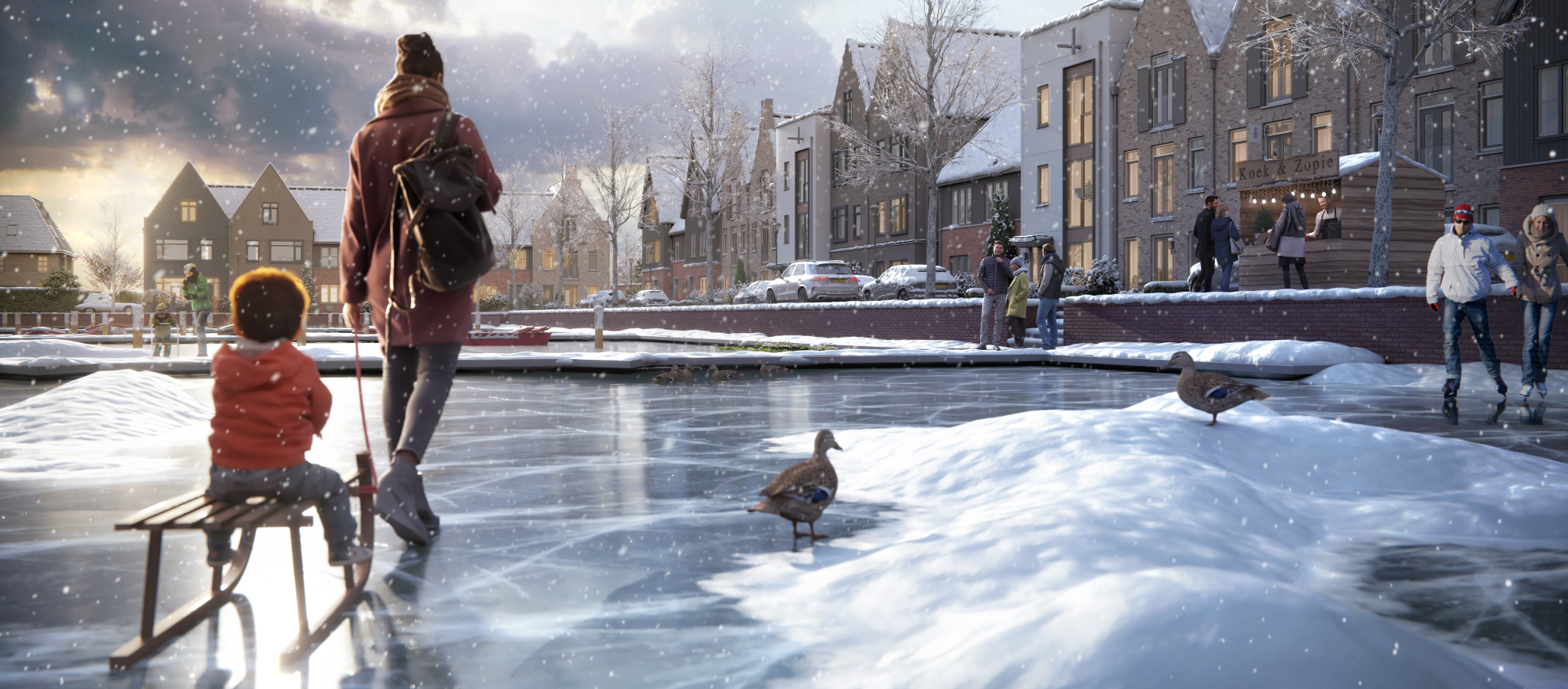 De schaatsen gaan onder en op het ijs is het heerlijk. De frisse wind langs je gezicht terwijl je met lange slagen over het strakke ijs glijdt. Hé, daar staat de buurvrouw! Ze lacht, jij zwaait en in het voorbijgaan beloof je dat je straks een kop warme chocolademelk komt drinken. De haven van Waterrijk 5A1 in Weespersluis is een hotspot, zelfs als het winters koud is. De haven, waar tijdens warme en zonovergoten dagen de bootjes dansen op het water of koers zetten richting De Vecht, is in de winter de beste schaatsbaan van het land. Hier kom je jouw buren tegen en voel jij je thuis.